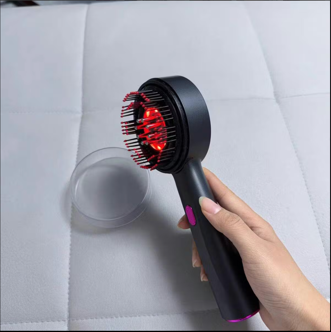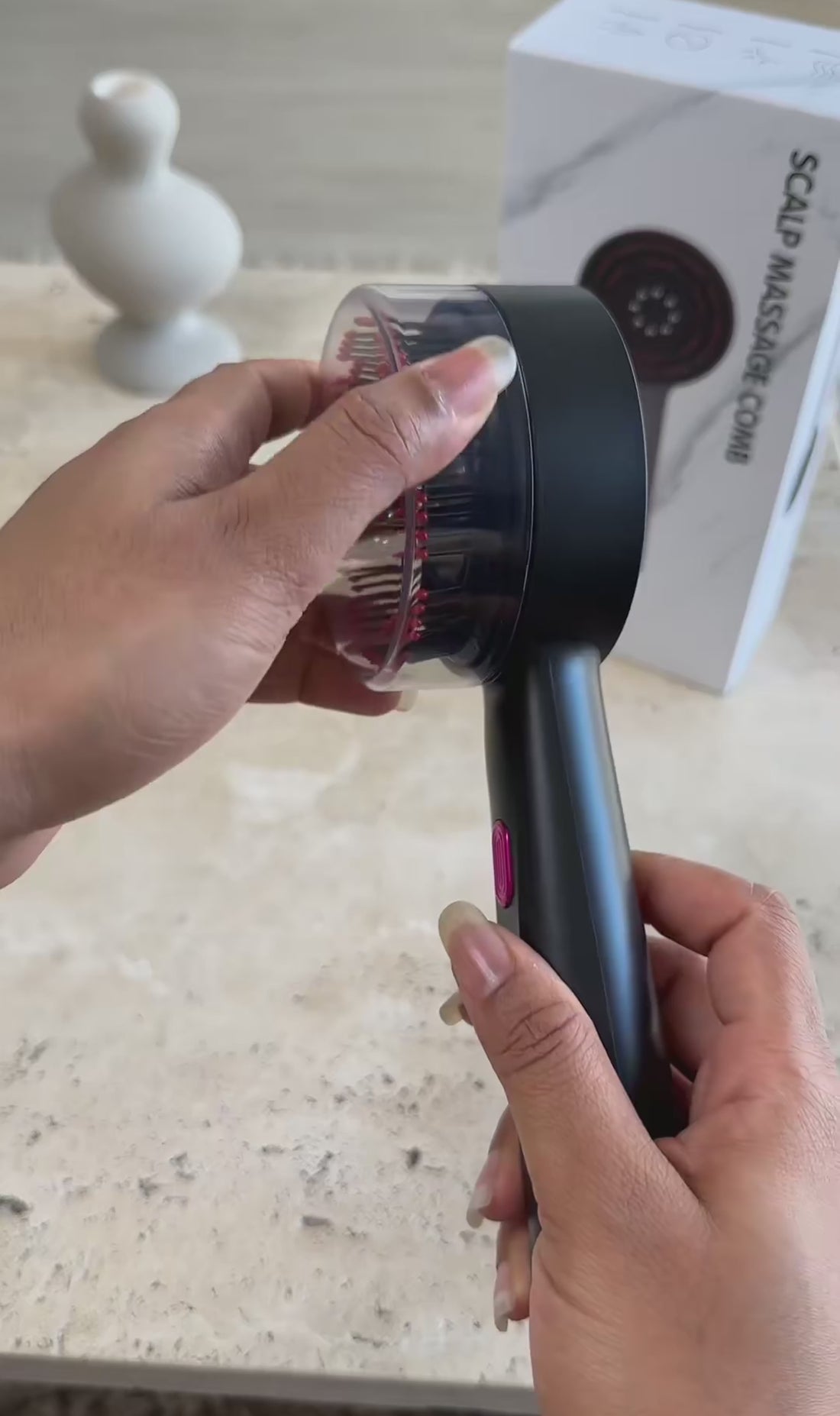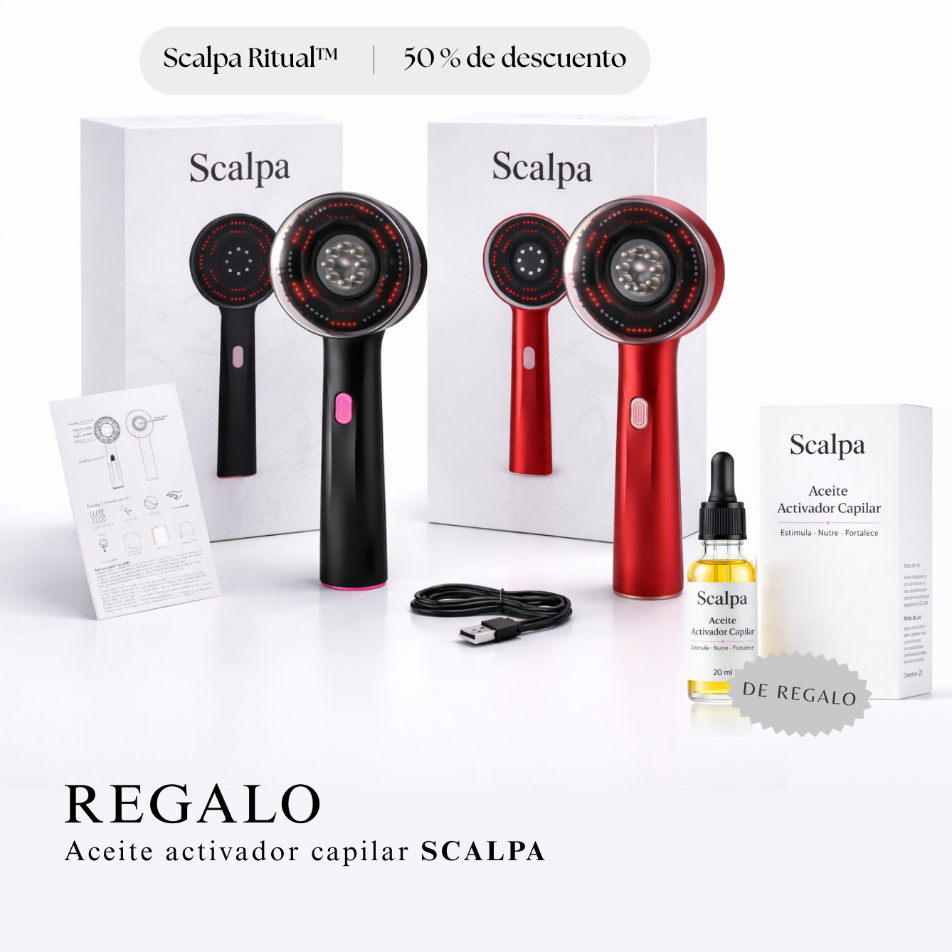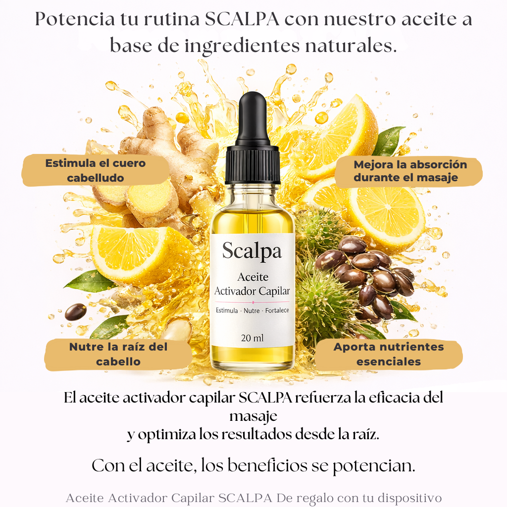 Scalpa Ritual™ ha sido diseñado como una herramienta de cuidado, no como un accesorio. La combinación del masaje controlado, la difusión de aceite y la tecnología LED roja actúa directamente sobre el cuero cabelludo. Desde las primeras aplicaciones, la mayoría de las clientas sienten un alivio real y una mejor absorción de los cuidados, y luego resultados visibles con un uso regular.